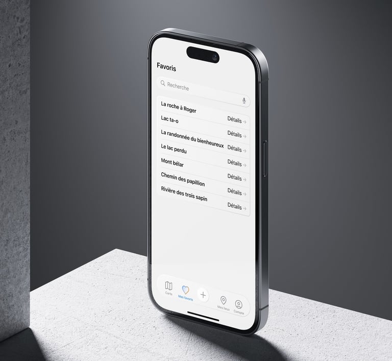 J'ai conçu une application iPhone complète, du concept jusqu'à l'UI/UX, servant de réseau social pour découvrir et partager des lieux uniques pour des activités de plein air méconnues. Inspirée par la philosophie de design d'Apple et les concepts d'iOS 19 (puis d'iOS 26), l'interface est pensée pour être fluide, moderne et intuitive.